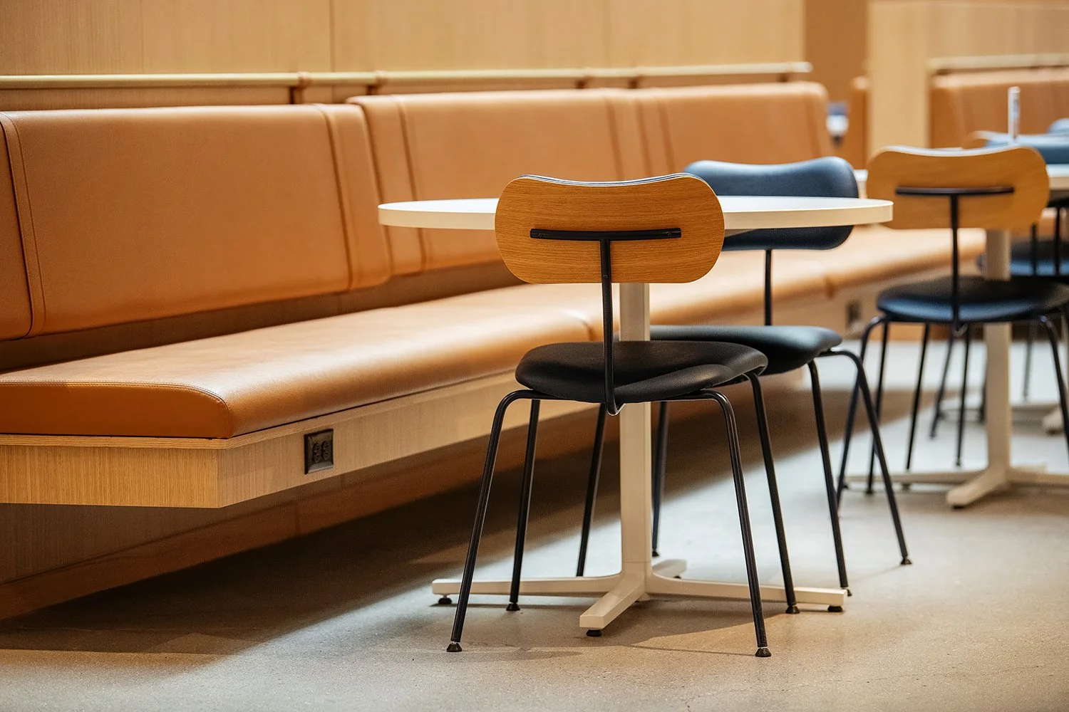 The next batch of images focus on the cafeteria and the seating areas that support it.
